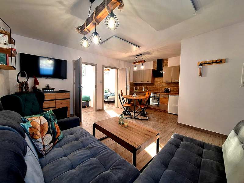 Zapraszam do Nas, do dyspozycji 4 nowe apartamenty, każdy dla max 6 osób (ok.45m2), każdy z nich ma dwie sypialnie. Jedna z łóżkiem małżeńskim, druga z dwoma pojedynczymi łóżkami z możliwością połączenia. W obu sypialniach znajdują się szafy na ubrania.